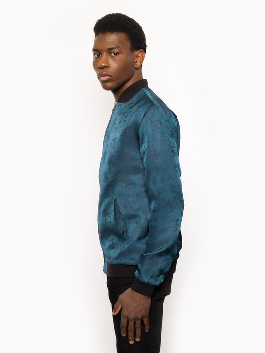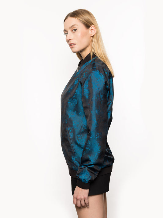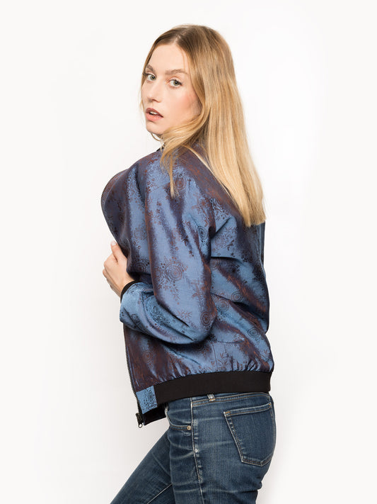 Bomber en Soie Kaelu — Réversible & Artisanale (Bleu)